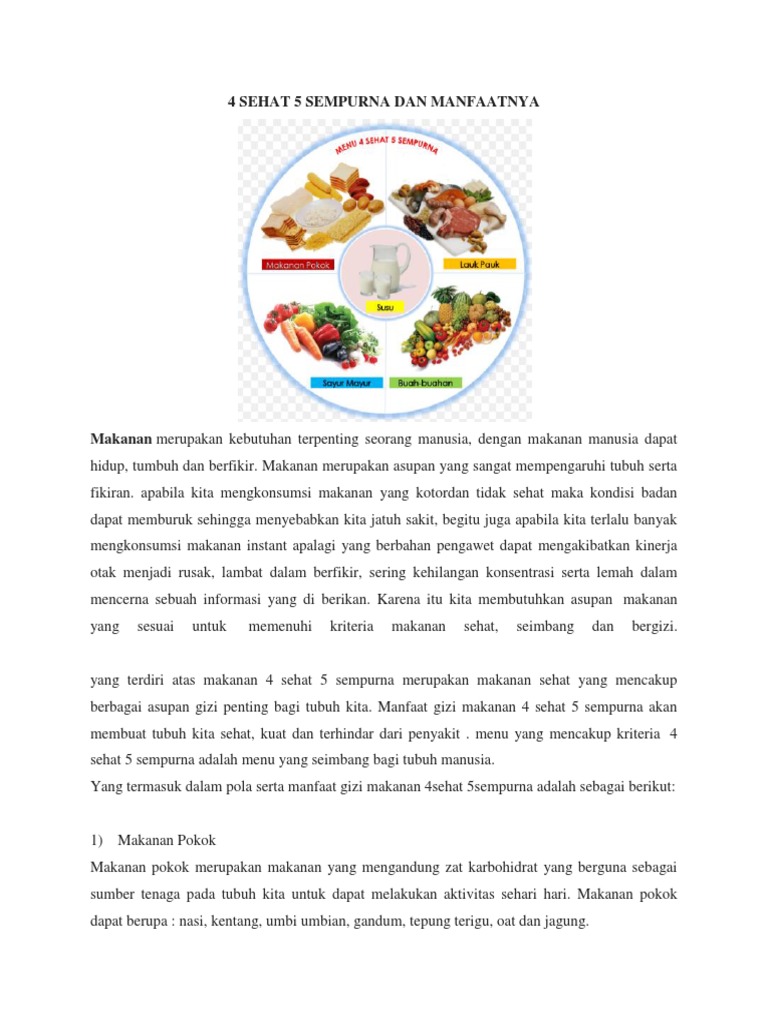 Laporan Praktikum Uji Makanan Doc Laporan Praktek Tata Boga 4 Sehat 5 Sempurna Kelompok 1. 5sehat4sempurna 5 sehat 4 sempurna menjadi sebuah kampaye yang diterapkan pemerintah sejak tahun 1955Kampanye ini disarankan pemerintah kepada masyarakat Indonesia untuk mewujudkan warga negara yang sehat.