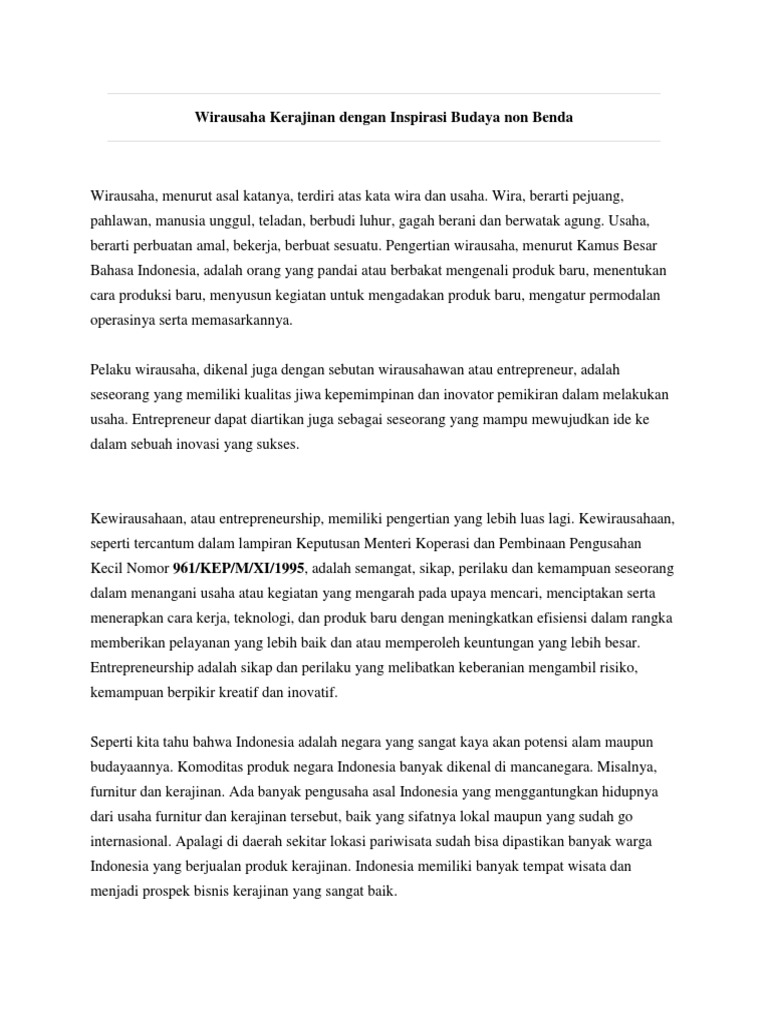 Wirausaha Kerajinan Dengan Inspirasi Budaya Nonbenda Doc Pdf Download Contoh Makalah Lengkap