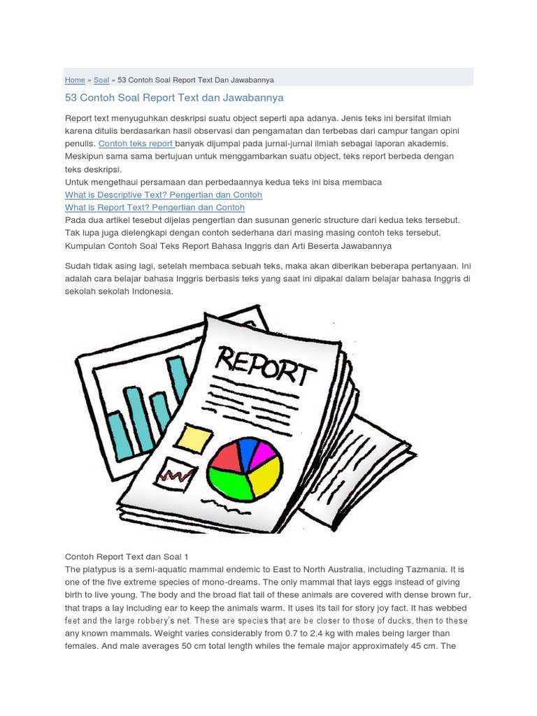 Soal tentang factual report. Contoh Text Factual Report dan Contoh Soal. 20200430 Contoh Soal Report Text Pilihan Ganda dan Jawaban Report Text merupakan salah satu jenis teks dalam bahasa Inggris yang menjelaskan detail suatu objek. 11 20 Contoh Soal Report Text Pilihan Ganda dan Jawaban 11.