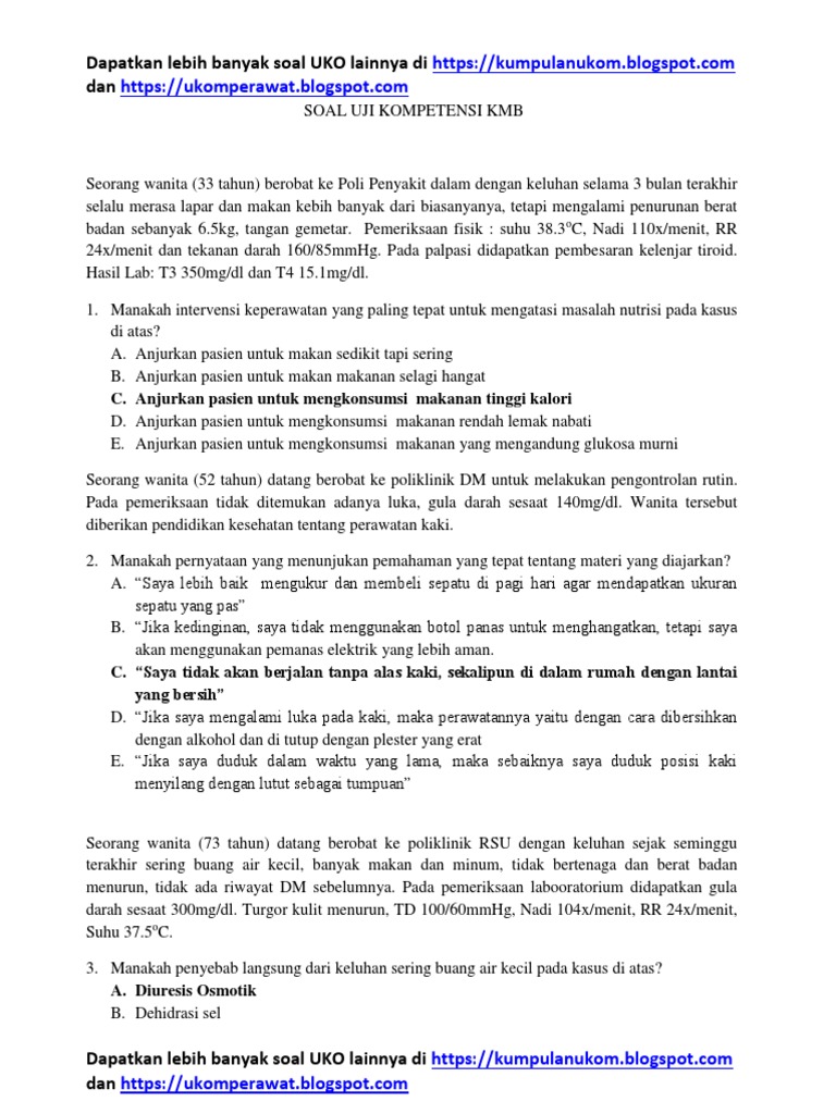 Contoh Soal Uji Kompetensi Ukom Keperawatan Medikal Bedah Kmb